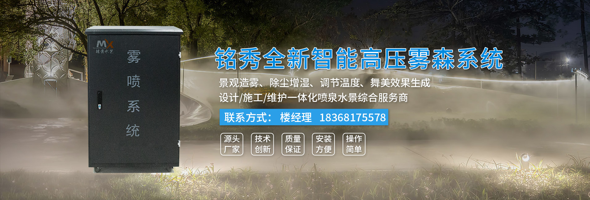 杭州銘秀水藝水景設備有限公司位于杭州余杭鳳都工業園區內,是一家從事噴霧(霧森)設備、冷霧設備、噴泉設備集各種新型水景設備生產、銷售與租賃的企業。